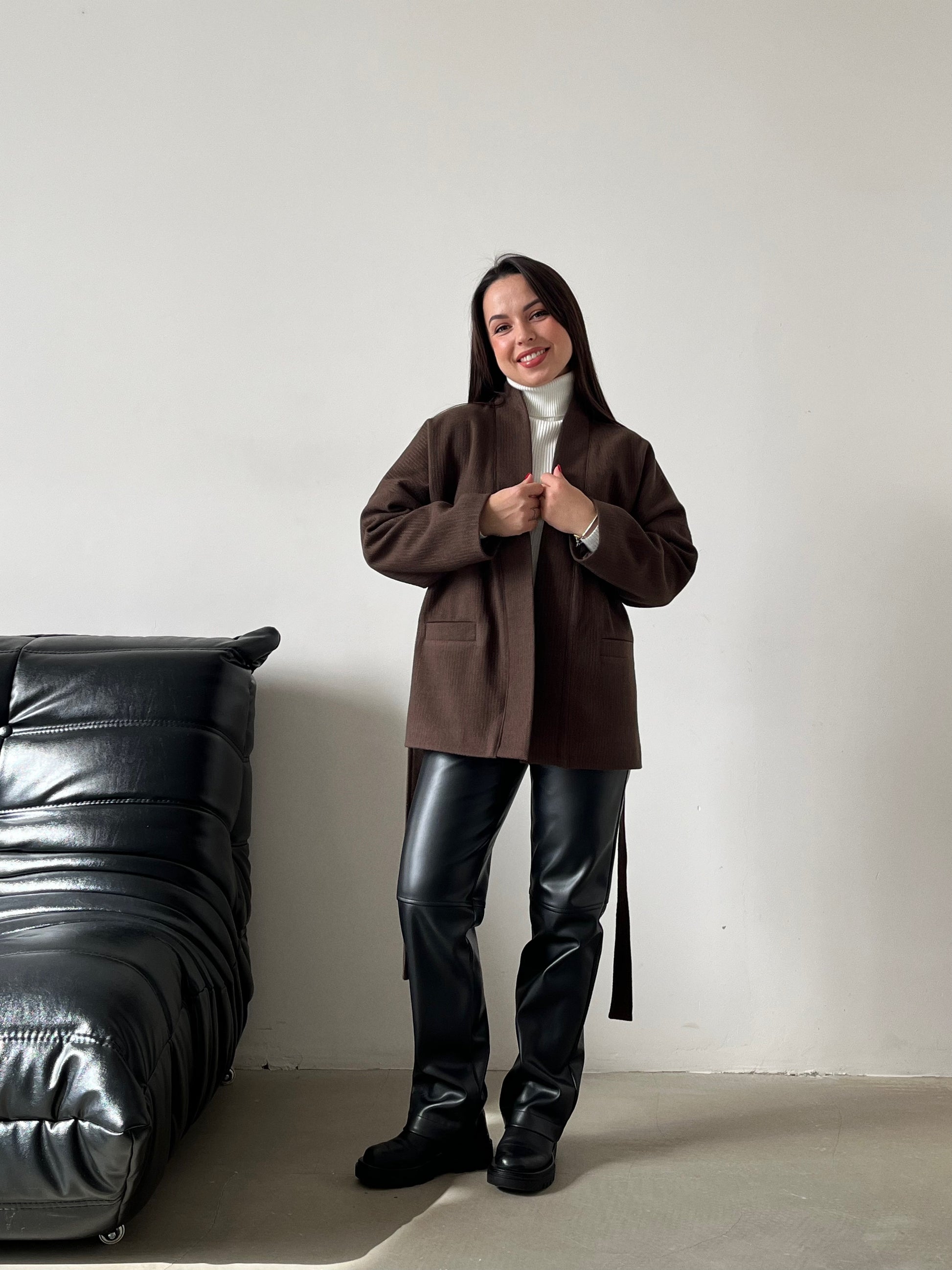 Форма пальта, м’якість кардигана. Лаконічний верхній шар для прохолодних днів.