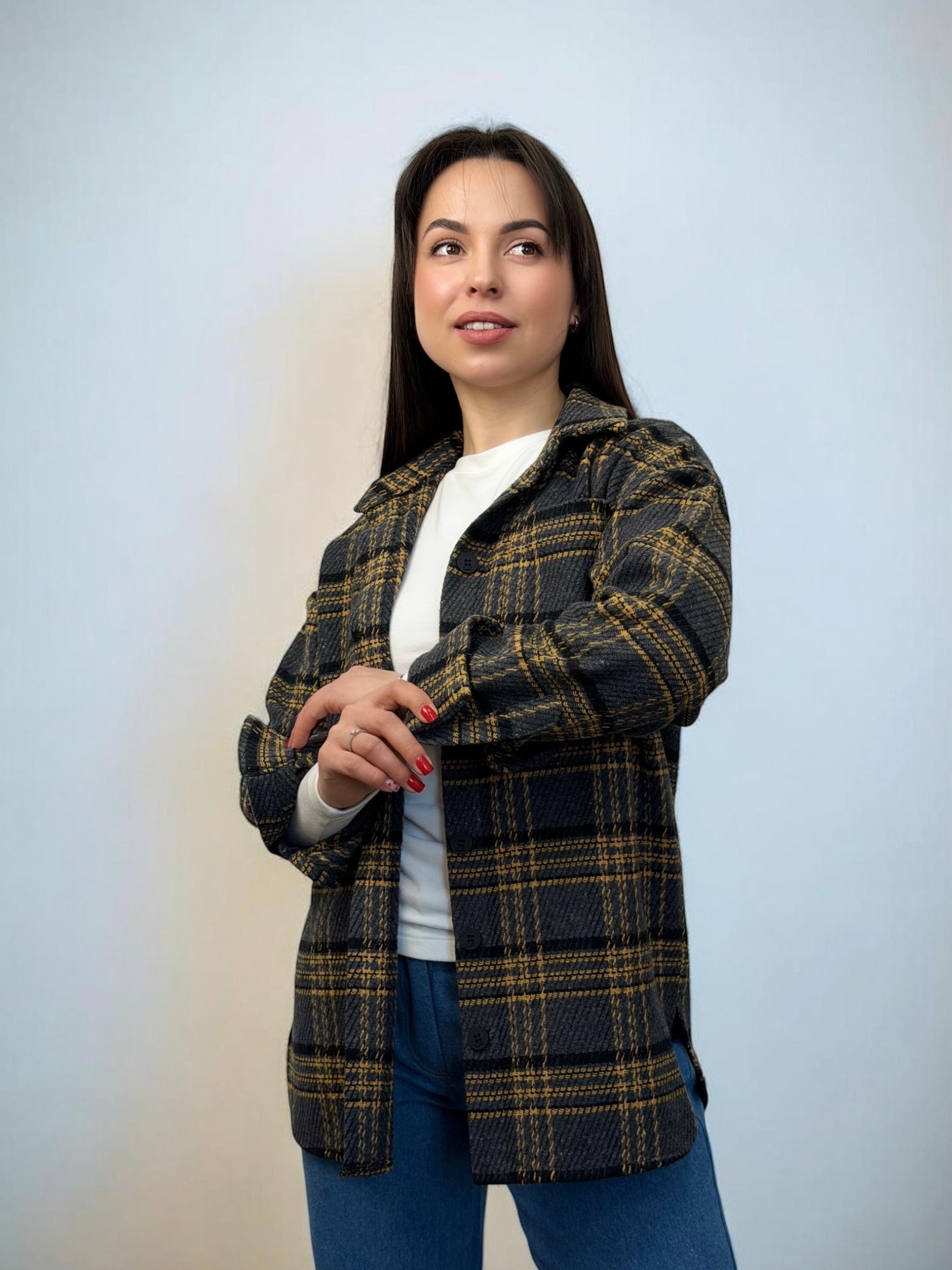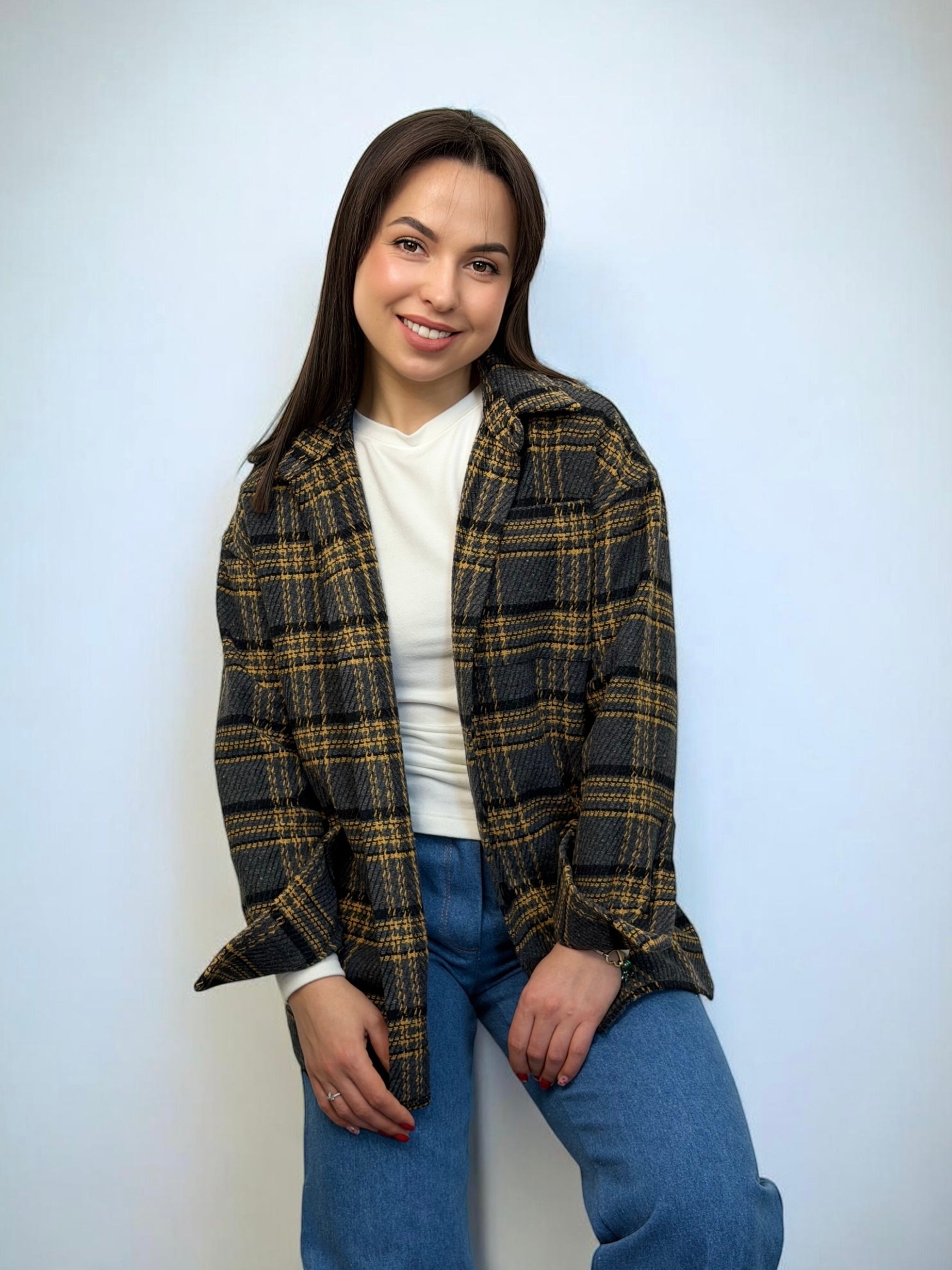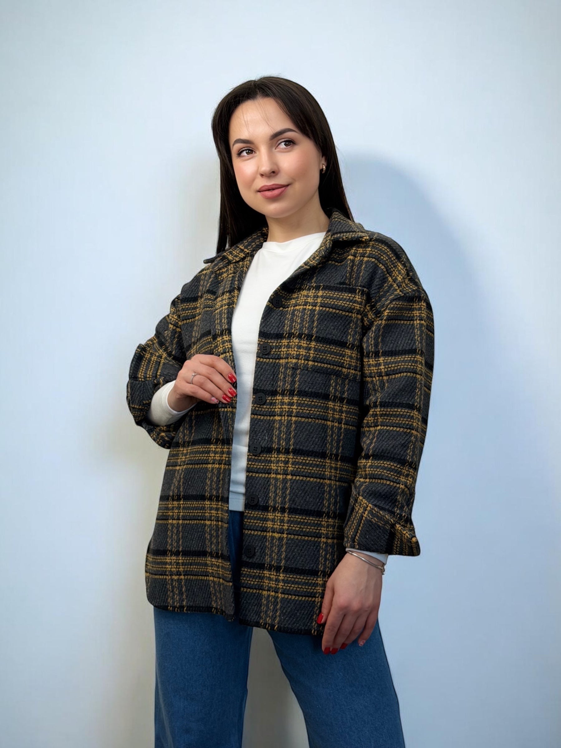 Тепла, щільна, з характером. Ідеальна як самостійна річ або як легка альтернатива куртці.