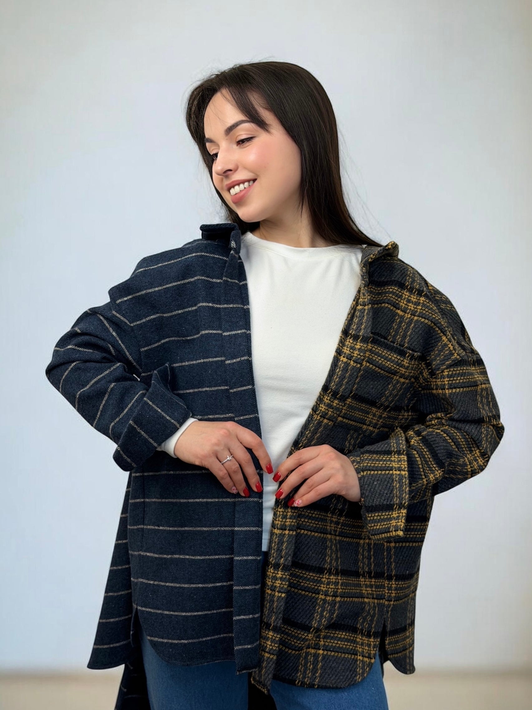 ✔️ Два відтінки: теплий коричневий у клітинку та глибокий темно-синій